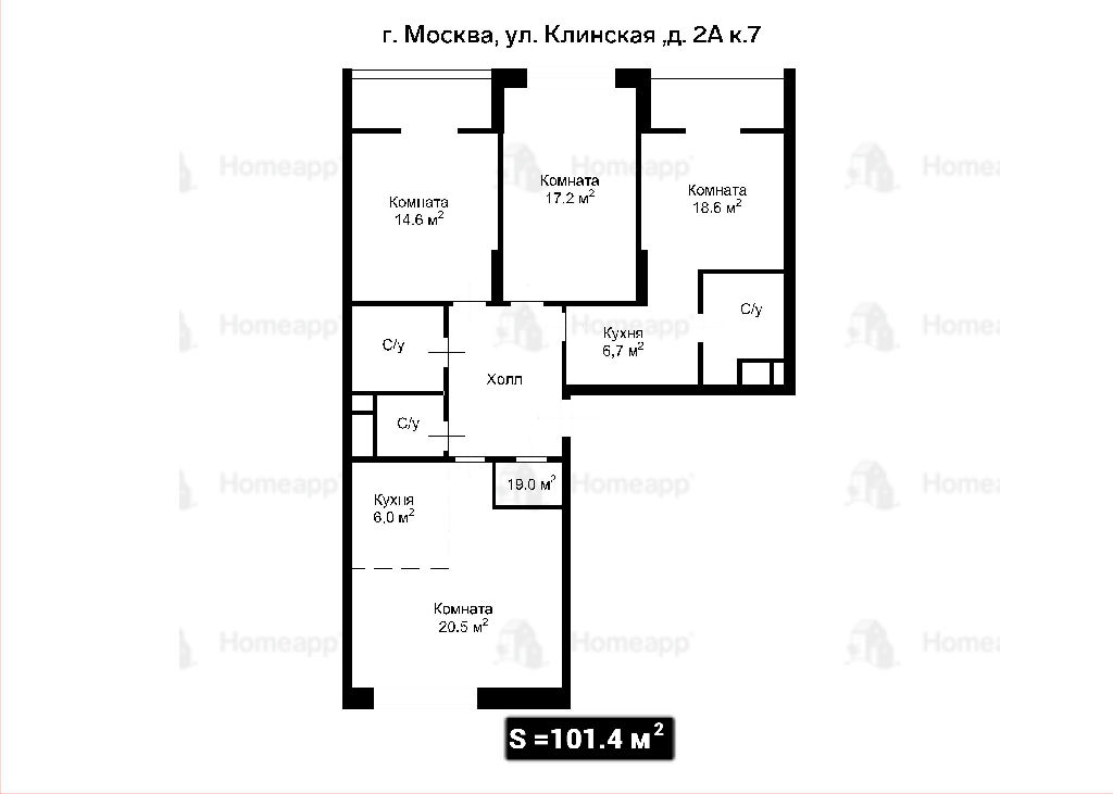 Комнаты: 20.5-14.6-17.2-18.6 м2